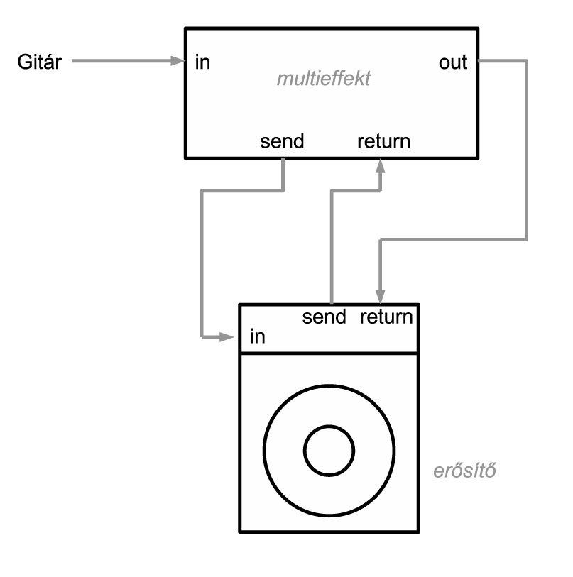 Effekt hurokkal rendelkező erősítő és multi-effekt összekötési módja: